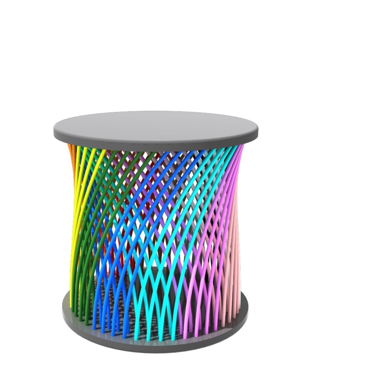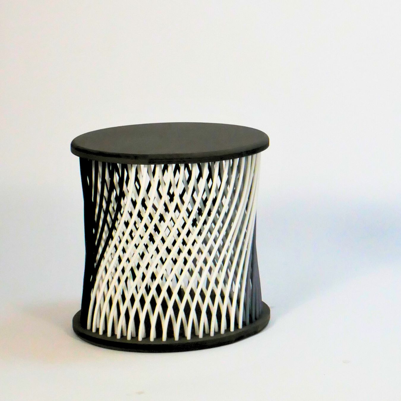 Das Design des Kabelhockers kommt vollständig ohne Schrauben oder Klebstoffe aus. Durch formschlüssige Steckverbindungen, die gegenläufige Anordnung der Kabel und die flexible, aber stabile Beschaffenheit des Materials entsteht ein belastbares Möbelstück mit Charakter. Getestet wurde der Hocker auf eine Tragfähigkeit von bis zu 150 kg.