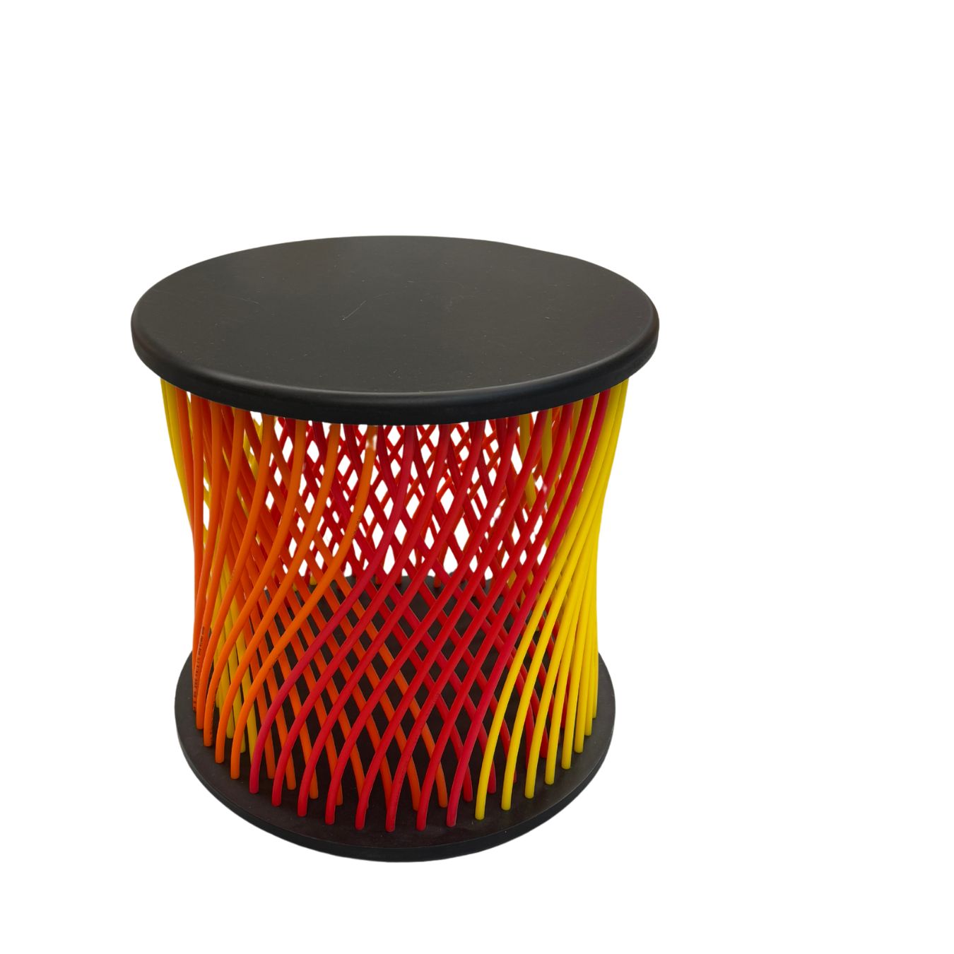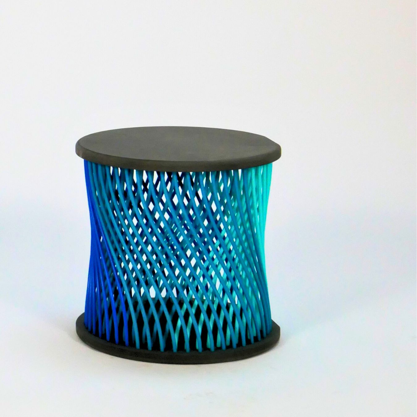 Die bunten Kabel verleihen dem Hocker eine einzigartige Erscheinung und ermöglichen verschiedenste farbliche Kombinationen. Auf Wunsch sind per Einzelanfertigung auch weitere Farbkombinationen möglich.